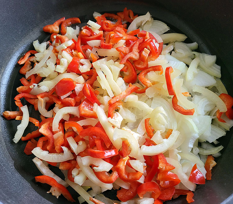 На одну грудку я взяла 1 приличного размера луковицу, 2 болгарских перца (небольших) и чуть-чуть перца чили.