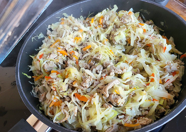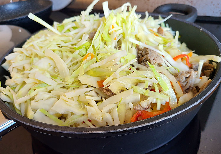 Получается довольно ленивое, при этом вкусное блюдо. Оно менее ленивое, чем с макаронами – надо капусту нарезать. Но зато гораздо меньше калорий, и вообще сплошная польза.