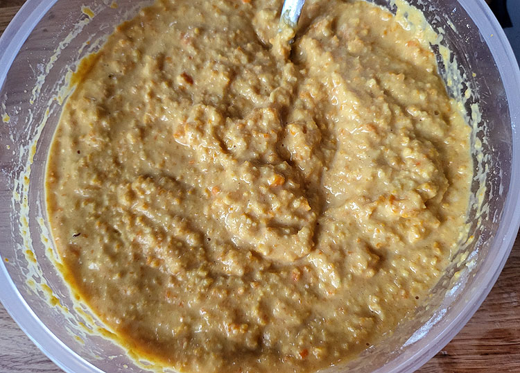 Все смешать обычной ложкой – тесто по консистенции вот такое: