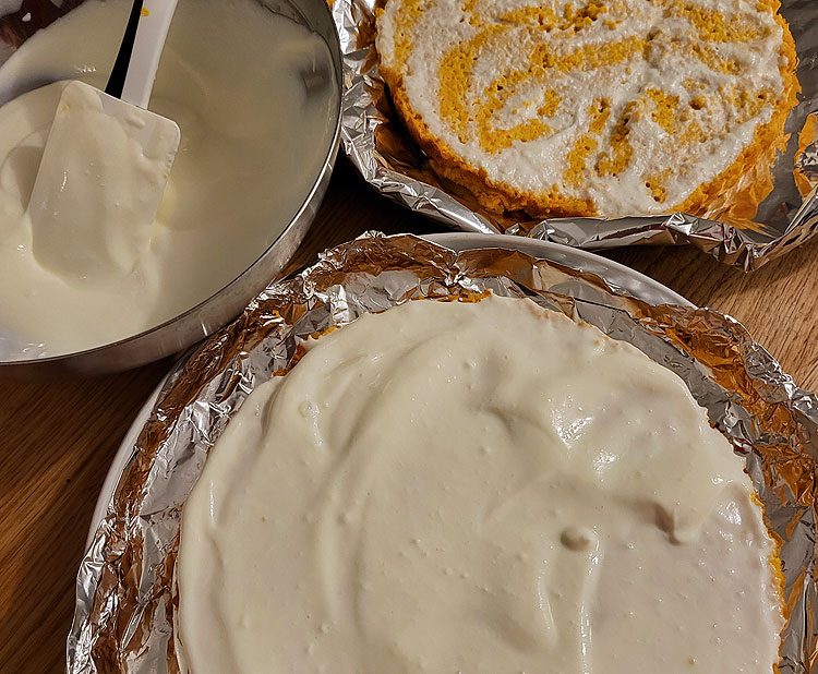 Крем поделить. Треть крема оставить в тепле на то время, пока печется корж, а 2/3 крема убрать в холодильник – там крем загустеет, станет более стабильным. А в тепле наоборот будет более жидким.