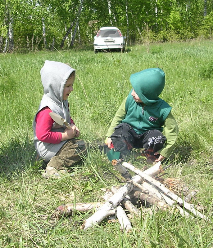 Вобщем, носились по полянке и жгли костер. Костер был неважнецкий, а полянка лучше. И землю копать бабушке помогали помаленьку.