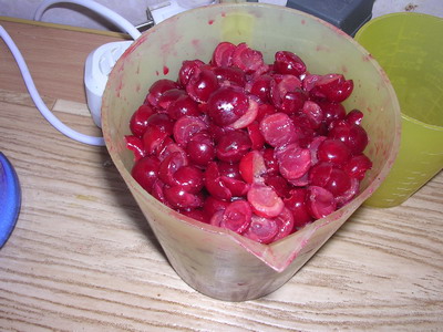 Из 2-литрового ведерка вишни почти вышла литровая кружка очищенной вишни: