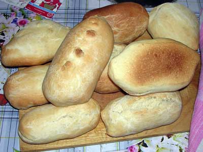 Дополнения к рецепту на пачке. Заготовленное тесто пусть постоит хотя бы минут 30. А лучше часик. Потом лепим из него булочки, раскладываем их на листе, и пусть все это снова постоит минут 30-40. Ставим булочки обязательно в горячую духовку. После того, как они подоспели, сразу их не лопаем, а складываем на что-то деревянное и накрываем чистым полотенцем. Деревянное – это уже из области предрассудков и шаманства, но я все равно всегда так делаю. Вобщем, все дополнения – обычные для выпекания хлеба.