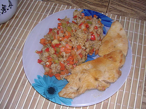 На гарнир – китайский рис с овощами из предыдущего поста, только риса в овощи положила в 2 раза меньше (вышло только вкуснее).