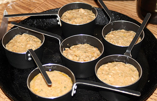 Тефтельки, которые я хотела потушить в соусе, развалились не дождавшись ентого самого соуса. Подавать мужу на ужин невразумительную (хоть и вкусную) мясную кашу? А мы сделаем хитрее: мы сделаем жюльен! Для этого мы просто эту кашу (уже приправленную сливочно-грибным соусом, как и планировалось) разложим по кокотницам. Был бы сыр, можно было бы еще посыпать тертым сыром и чуть запечь в духовке, но в отсутствие сыра и так сойдет.