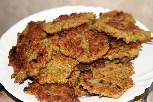 На гарнир в сусеках и амбарах нашлись только спагетти, которые уже были вчера, и рис. Прокололась, не купила никаких овощей-картошки. О! А ведь из риса можно сделать замечательные рисовые лепешки. (Стакан риса варим в 2 стаканах воды до полного выкипания; добавляем столовую ложку крахмала, 2 яйца, 2 чайные ложки приправы “для плова”. Жарим как оладушки.)