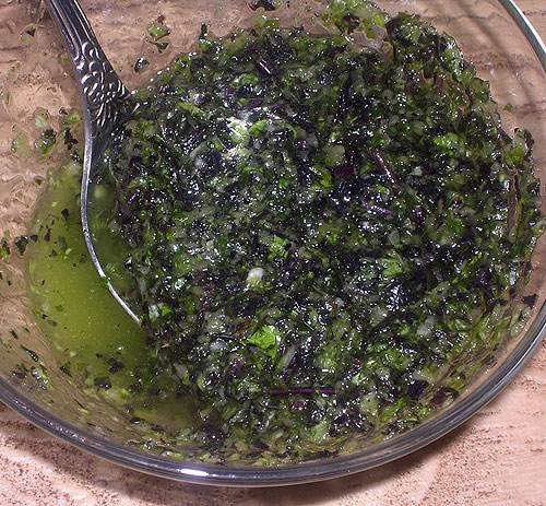 Один – базиликовый. Базилик, зубчик чеснока, несколько листьев салата чуть соли, маленько растительного масла – в блендере. Точные пропорции указать не могу, потому что не понимаю, как написать, сколько я брала базилика :) В него очень вкусно макать какой-нибудь хлеб: лаваш, булочку, лепешку, пиццу…