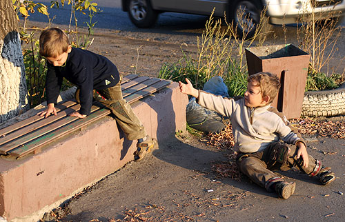 Как-то раз теплым осенним деньком мы решили посидеть возле помойки. А что? Обычное это дело – посидеть возле помойки. Тем более “Мама, мы нечайно!”