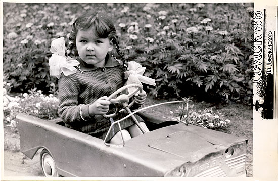 Вот мы опять в фотоателье возле бабушки (заметьте, это находится по омским меркам в самой тьму-таракани, возле телевизионного завода). Здесь мне почти 5 лет. Примерно с 5-летнего возраста дети девочку на фотографиях признают за меня. Более младшие снимки признавать отказываются категорически: “Неправда, мама, это не ты, а просто девочка”.