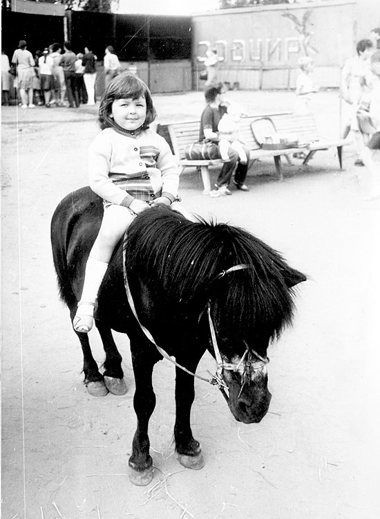 А в точности такая фотка есть у всех моих сверстников. Правда у некоторых более продвинутых (например, у моего мужа) такая фотка на верблюде. А у тех, кто верблюда испугался – просто на пони. Я уж не помню, кто испугался верблюда, я или Ольга. Здесь мне 5,5 лет.