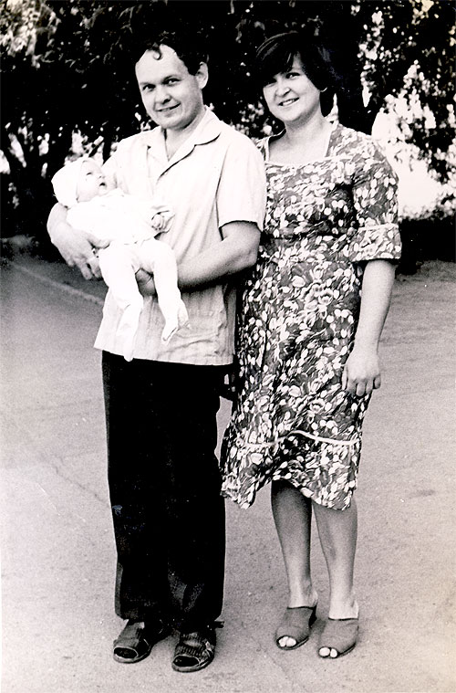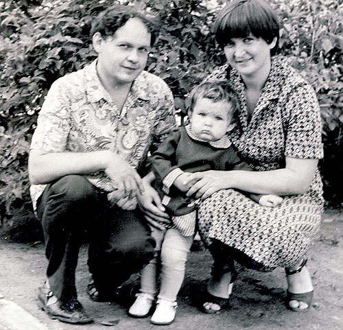 А эта фотография показывает, что как ни крути, я больше похожа на папу. Так и повелось: кто видел меня и мою маму, говорили, что я сильно похожа на маму. Кто видел меня и моего папу, говорили, что я сильно похожа на папу. Здесь мне год. Снимает, кстати, наш бессменный университетский фотограф А.И.Галюкшев, отличный фотограф и человек.