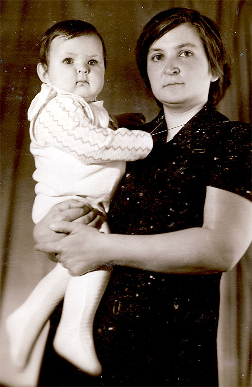 Потом я стала еще побольше. И стала похожа на человека. В частности, на маму. Здесь мне 10 месяцев. Кажется, я уже умею ходить и есть колбасу.)