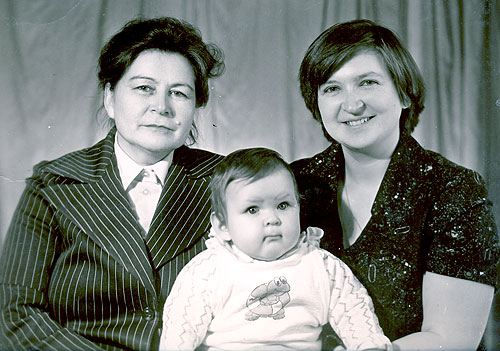 А вот здесь можно пронаблюдать сходство у женщин 3 поколений нашей семьи. Слева направо: бабушка, я, мама. Как показывают наблюдения, сходство наблюдается весьма натянутое.