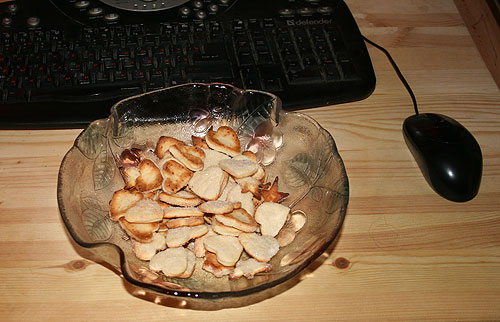 Денису, кстати, в правильной разделке печенья понравились больше; но Антон ни в какую – свои мелкие печенюшки хрусткает, как семечки.