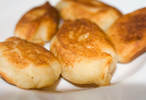 Пирожки я напекла с картофельным пюре. Тесто очень клевое: оно не рвется, тянется, очень гибкое, элластичное, хорошо склеивается. До выпекания оно чуть сладковатое, но после выпекания – самое то! Сделала пару пирожков с колбасной начинкой – хорошо. Но, думаю, самое то будет, если сделать с начинкой из апельсина или мандарина. Очень просится ))) И с луком-яйцом или с капустой тоже должно сочетаться. Насчет беляшей не уверена, что из него получатся – все-таки тесто какое-то слишком… нежное, что ли, не брутальное как для сочетания с настоящим мясом.
