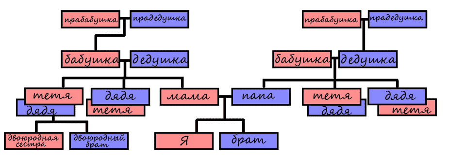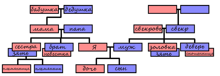 Этот пост скорее для самой себя шпаргалка. Лень каждый раз заново узнавать как какой родственник называется.