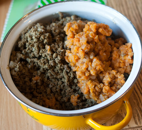 Вылавливаем печень, морковку и лук из воды, пропускаем через мясорубку, пока продукты еще горячие.