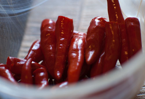 200 грамм перчиков чистим от семян (и удаляем по возможности ткань, на которой крепятся семена – она очень острая). Чистили с помощью шпилек. Перчики еще раз хорошенько промываем под проточной водой, чтобы окончательно убрать семена.