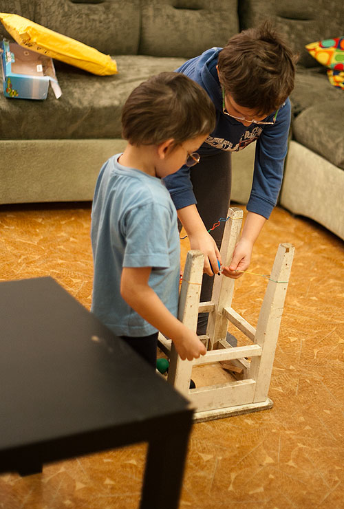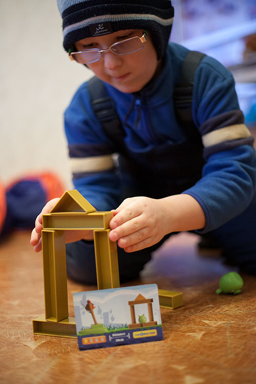 Итак, замки строились (по схемам и без схем). Потом в замки запуливались птицы. Из модной катапульты!