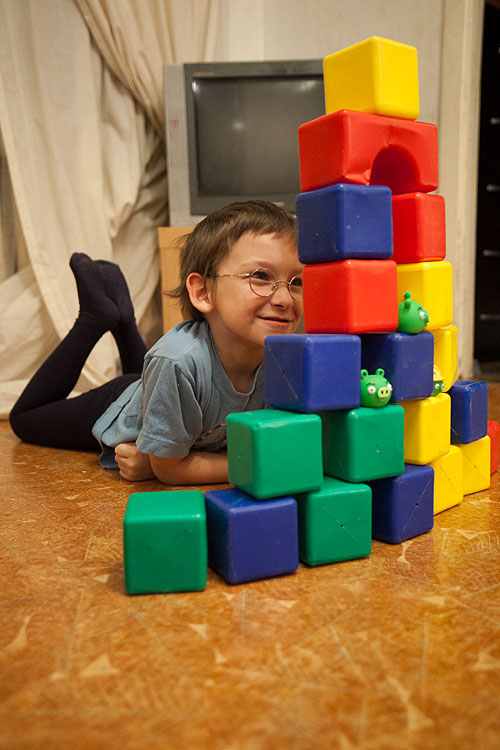 Если не все свиньи погибали с первого раза, то уж со второго удара погибали точно все. Из наших старых кубиков башня была крепче.