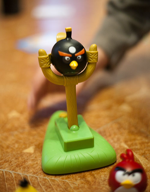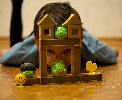 Весь вечер дети играли в Злых Птиц, отвлеклись только на полчасика сбегать поиграть в Angry Birds на компьютере. Сказали, что все в порядке, у нас действительно птицы правильные. Поэтому можно продолжать играть в живых. В реале интереснее!