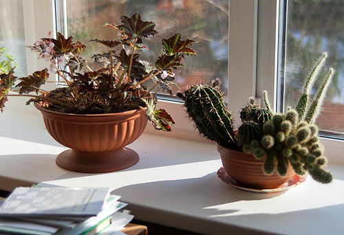 Кактусы остались еще от папы, но пересажены и разрослись. А большой цветок – ее личный. Татьяна Васильевна на фото не попалась.