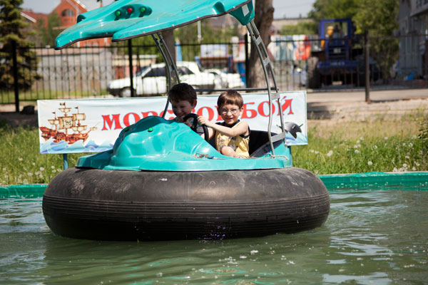 В прошлом году лодки были весельные. В этом – на каком-то электро-приводе, да еще и на такой большой резиновой камере – ими очень удобно биться друг об друга или об бортик.