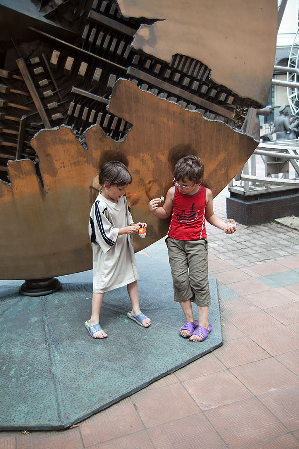 В сам музей современного искусства мы не пошли. Возле музея есть дворик (доступ туда абсолютно свободный). Во дворике – целое море скульптур. Вот на них-то мы и ходили смотреть. Вы же знаете, мы скульптуры любим ))) Если были бы без детей – обязательно зашли бы в музей, а так решили обойтись.