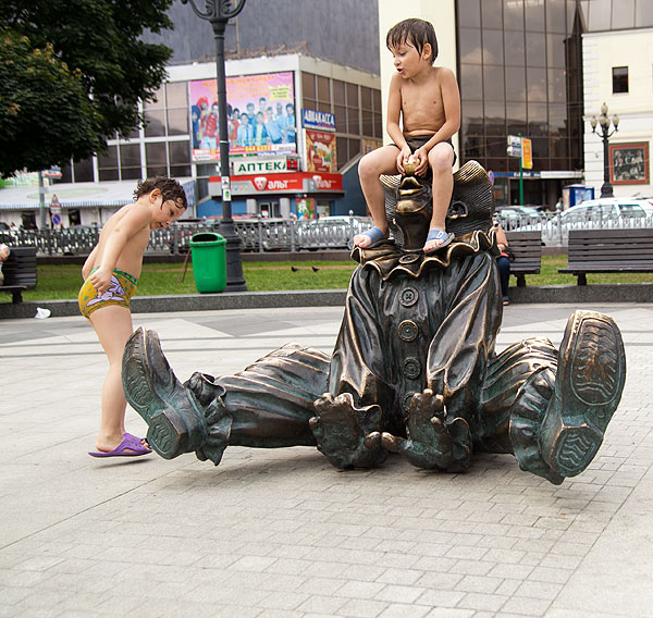 Да и вобще, отвлекшись от фонтанов, дети внезапно обнаружили скульптуры, которые они страшно любят.