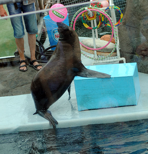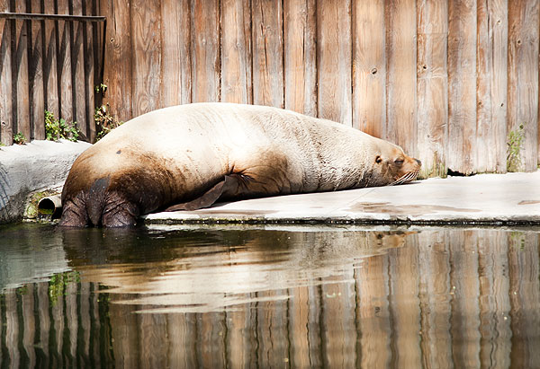 Вот еще один ластоногий, но не в дельфинарии, а в обычной клетке. Правда, в клетке построен бассейн, в котором животин (морской котик? или кто это? – я к своему стыду сомневаюсь) постоянно плавает с необыкновенной грацией.