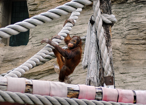 Обезьяны тоже не за сеткой-клеткой, а за стеклом. Наблюдать за ними очень интересно, они очень живые и делают разное.