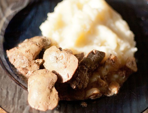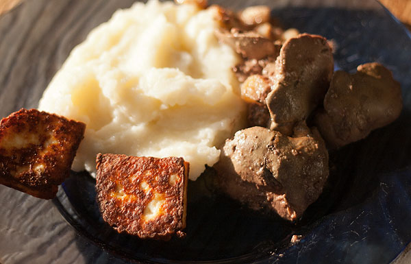 Если что-то пойдет не так (например, пару раз я печенку пересушила, стремясь выпарить жидкость), можно размять печень вилкой, смешать с картофельным пюре в отношении 1:1 – это отличная начинка для пирожков или вареников.