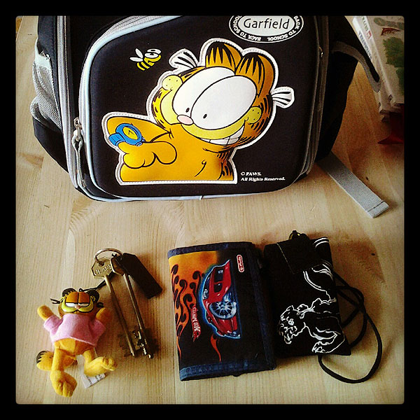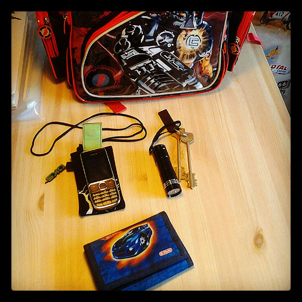 Вот они, атрибуты взрослой жизни: ключи, кошелек, телефон, рюкзак. У малышей такого не бывает!