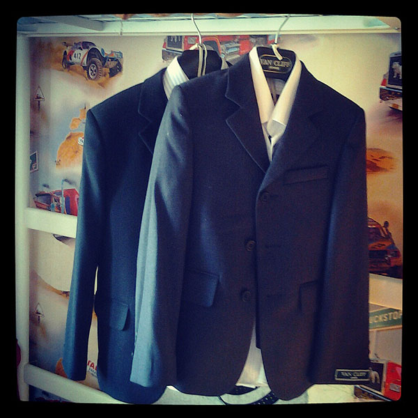 Траты на одежду составили около 13 тысяч рублей. Это 2 костюма (пиджак+жилет+брюки), по 2 сорочки, по 2 белые водолазки, кожаные туфли, подтяжки (нам они удобнее ремня, но ремень стоит примерно столько же), спортивная форма (брюки + 2 футболки) (а шорты + футбока уже есть, кроссовки подходящие есть), по 4 пары черных носков (ведь раньше детям черные носки и вовсе не нужны были, а теперь просто обязательны!)