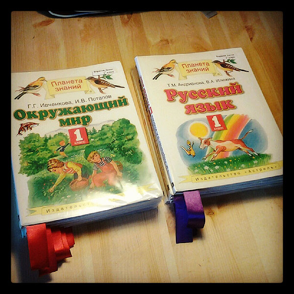 Книги велели не подписывать. Но я все же наклеила на все вещи лейблы с именем и названием класса.