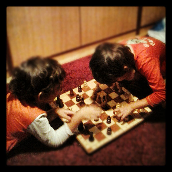 И интеллектуальная. Которая у нас проявилась не в срочном повторении букв и решении задачек, а во внезапно возникшей любви к шахматам.
