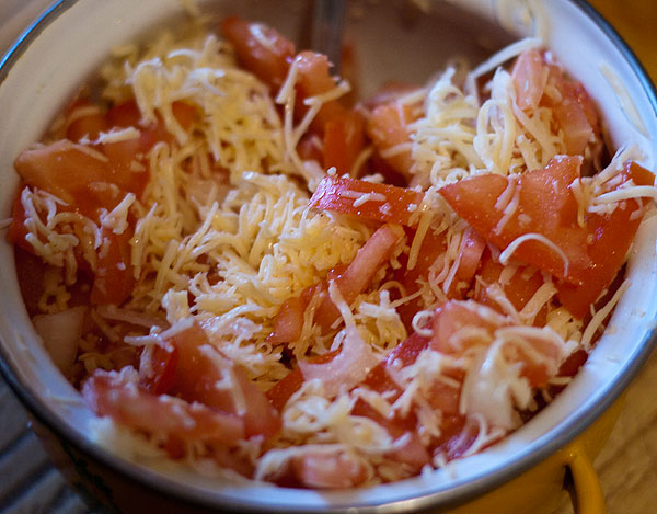 Помидорный (помидоры, много лука, тертый сыр, сметана).