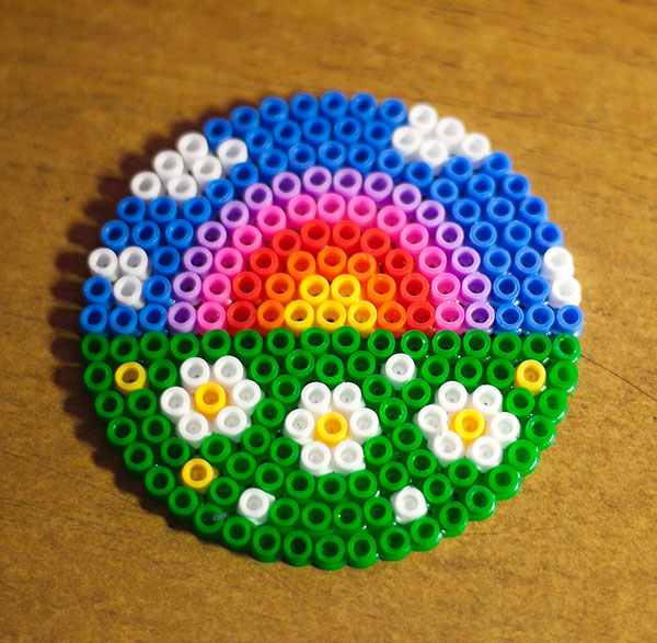 В зависимости от режима утюга бусины могут совсем расплыться до квадратиков как выше или же картинка останется ажурными кружочками: