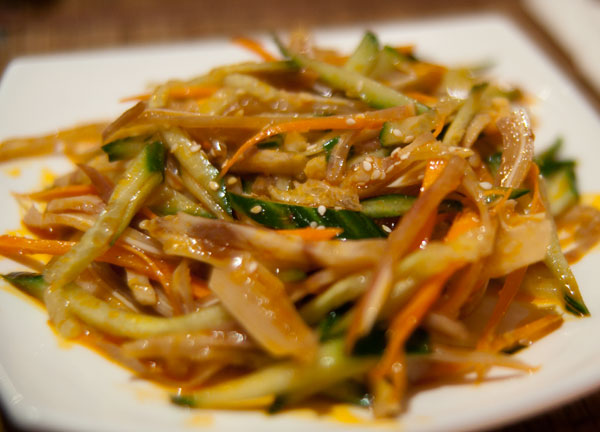 Салаты есть можно, но не впечатлили. Только вот этот, со свиными ушами – вполне ничего.