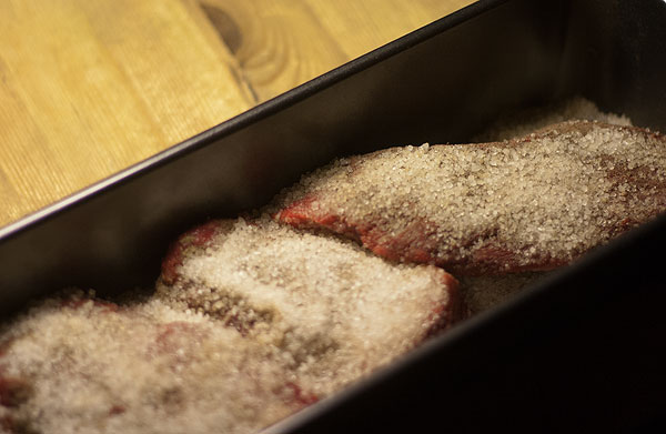Перед тем, как есть, мясо надо понюхать и посмотреть на просвет. Так гораздо вкуснее. И если запах я вам передать не могу, то мясо на просвет показать могу.