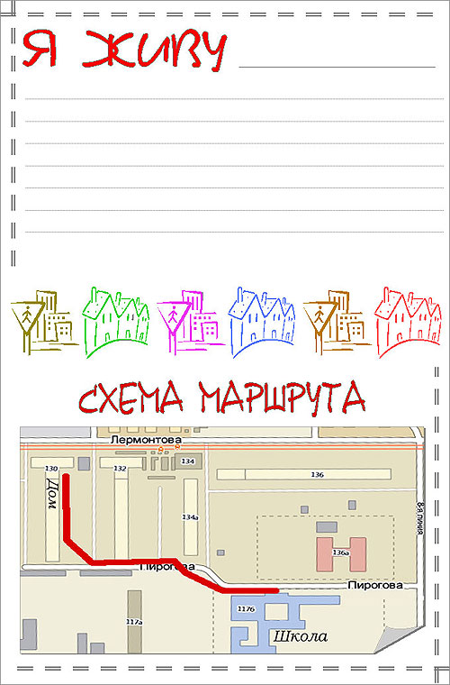 3.2. Страничка Я живу. Тут мы с ребятами сделали схему маршрута от дома до школы.