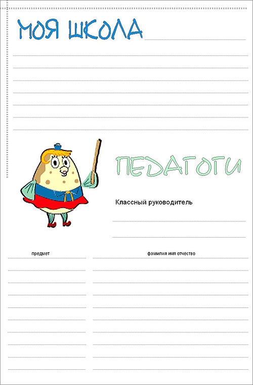 3.5. Страничка Моя школа пока у нас не заполнена. Муж мой в предвкушении, что наша учительница увидит Миссис Пабс.