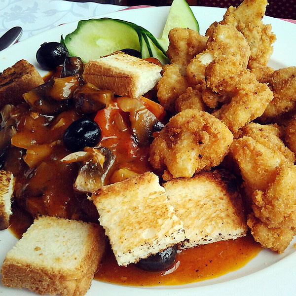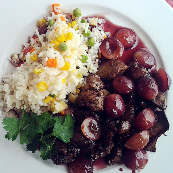 При таком бедном меню, я не ожидала, что кухня будет на высоте. Все, что подавали, было очень вкусное (единственное, отварной рис так себе). Печень с виноградом – обалденная, хочу дома такую повторить.