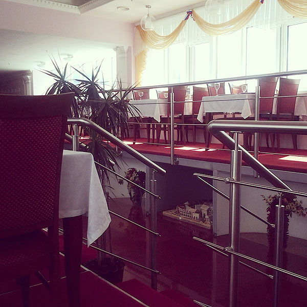 Интерьер у ресторана забавный. Столики стоят не на полу, а на подиуме возле окон.