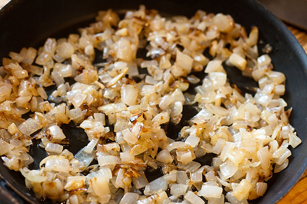 Луковицы две-три порезать мелко и пожарить. У меня 3 крупные луковицы.