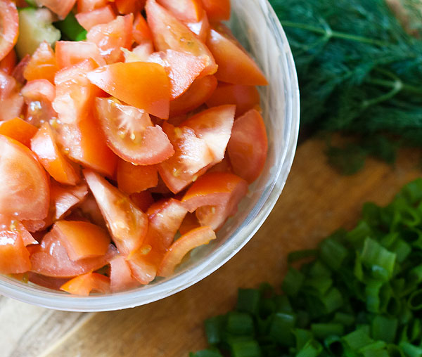 Тем временем можно сделать картофельное пюре. Оно сюда чудесно подходит. И салат полетнее, а то все-таки зимняя еда уже начинает надоедать.