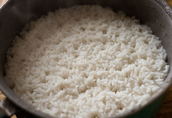 Сварить 1,5-2 стакана риса в двойном объеме воды. Чуть подсолить. Ну, чтобы получился полноценный вареный рис. В таком большом объеме вареный рис у меня никогда не выходит рассыпчатым, но в данном случае это и не требуется.