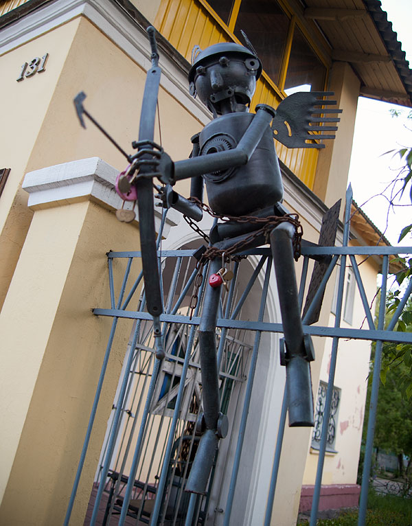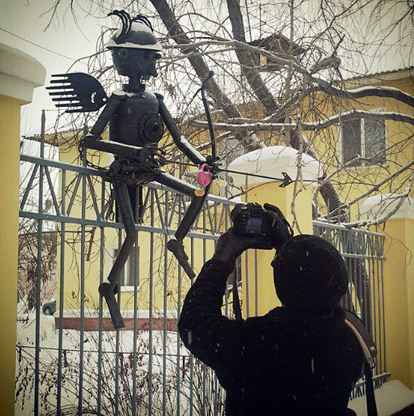 Купидон появился в конце прошлого лета на заборе возле студии “Болишер”.