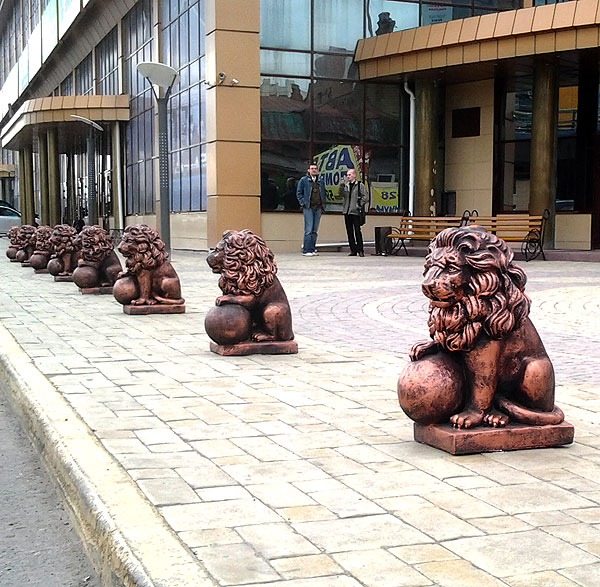 Вобще, скульптур в Омске становится больше и это очень радует. Вот, некоторые здания побогаче даже вместо простых столбиков, ограждающих тротуар ставят львов: