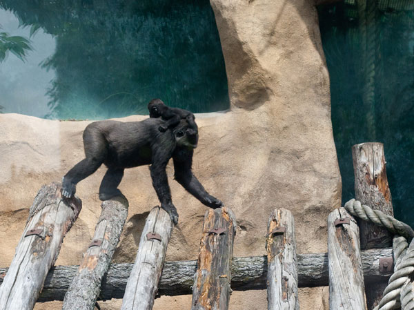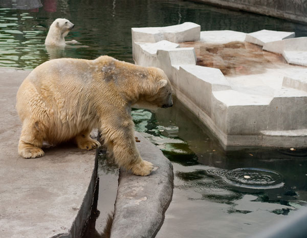 Мне намного больше понравилось заходить с этой стороны. Сначала дети играют в детском зоопарке. С удовольствием разглядывают знакомых им животных: гусей, медведя, козликов и т.д. Выступают, так сказать, на разогреве. А следом за детским зоопарком – обезьянки. Обезьянки живые, всегда чем-то заняты, очень интересные. Их можно рассматривать очень долго. Если же заходить от главного входа, то сначала спят кошачьи. Потом клетки, где должны быть очковые медведи, но на самом деле никого нет. Тут же пруд с утками. Вобщем, пока добредешь хотя бы до слонов – весь умаешься. А на обезьянок и детский зоопарк и вовсе ни сил, ни эмоций не хватает.